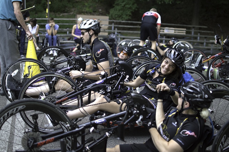 Riders lining up for the hand-cycle event, August 231, 2015.